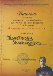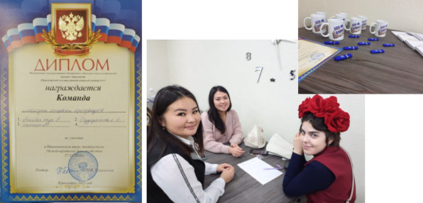 Специальным призом и благодарственным письмом отметили Зыкову А.А. в номинации «Лучший студент Красноярского ГАУ в творческой деятельности». Благодарственное письмо за достижения в области спорта вручили Сейитову Т.Д.
