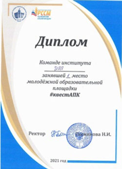 Для формирования активной жизненной позиции у студентов первого курса и празднования Дня работника сельского хозяйства и перерабатывающей промышленности 13.10.2023г в Молодежном центре организован Брейн-ринг среди институтов нашего университета. Команда нашего института заняла почетное 2 место. Участниками команды были следующие студенты: Кайнакова Айгуль Николаевна, Марченко Светлана Николаевнва, Сибгатуллина Рамиля Раисовна, Тимофеева Анна Александровна.