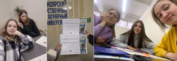 благодарственным письмом министерства сельского хозяйства и торговли Красноярского края за активное участие в волонтерском сопровождении мероприятий в рамках краевого совещания работников агропромышленного комплекса края – Конева Анастасия Борисовна, Комаров Кирилл Дмитриевич, Долгова Екатерина Евгеньевна;