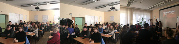 Для организации данного мероприятия привлекался психолог Тарасевич Анастасия Александровна и Учебно-методический центр по противодействию терроризму СФУ в лице руководителя Чижевской Ольги Сергеевны и ведущего специалиста Астротенко Александра Владимировича.