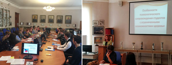 Участники секции обсудили актуальные вопросы: организации учебно-воспитательного процесса в современных условиях, формирования активной гражданской позиции, правовой и политической культуры молодежи, эффективного взаимодействия с лицами из числа инвалидов и ОВЗ, инклюзивного образования. С докладом «Особенности психологического сопровождения студентов с ограниченными возможностями здоровья» выступила заместитель директора по воспитательной работе института пищевых производств Шанина Е.В.