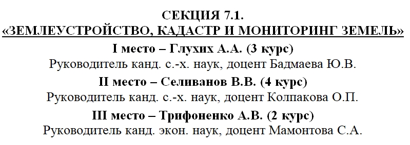 Подсекция 7.1. «Землеустройство, кадастр и мониторинг земель»