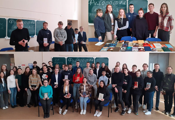 и рифму, выступает своего рода ускорителем сознания, мышления и мироощущения. В наибольшей степени соприкосновение философии и поэзии раскрывается в философской лирике. Однако, студенты отдали свое предпочтение не только поэзии, но и прозе. Вечные произведения классики, а также творения современных писателей и поэтов удачно дополняли друг друга. Были представлены следующие произведения: Дж. Лондон «Белый клык», А. С. Пушкин «Стихотворения. Сказки. Поэмы», М. А. Шолохов «Донские рассказы», Л. Буссенар «Капитан Сорви-голова», М. Ю. Лермонтов «Смерть поэта» и «Герой нашего времени», В. П. Астафьев «Пастух и пастушка», Наполеон Хилл «Думай и богатей», Софи де Вильнуази «Как я решила умереть от счастья», Эльчин Сафарли «Когда я вернусь, будь дома», Дэниел Киз «Таинственная история Билли Миллигана», «Тувинские загадки», Джен Синсеро «НИ СЫ», Дэн Браун «Ангелы и демоны», Герберт Уэллс «Война миров», В. Ю. Панов «Зандр», В. А. Каверин «Два капитана» и т. д.