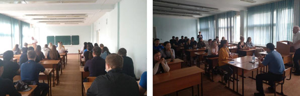 5. Встреча с главным специалистом отдела промышленной безопасности и охраны труда АО «Восточно-Сибирская нефтегазовая компания» ПАО «НК Роснефть» А.А. Шелковниковым. Мероприятие организовывали преподаватели кафедры «Безопасность жизнедеятельности» для студентов 3 и 4 курсов по направлению подготовки 20.03.01 Техносферная безопасность (приняли участие 30 студентов) (рис.5).