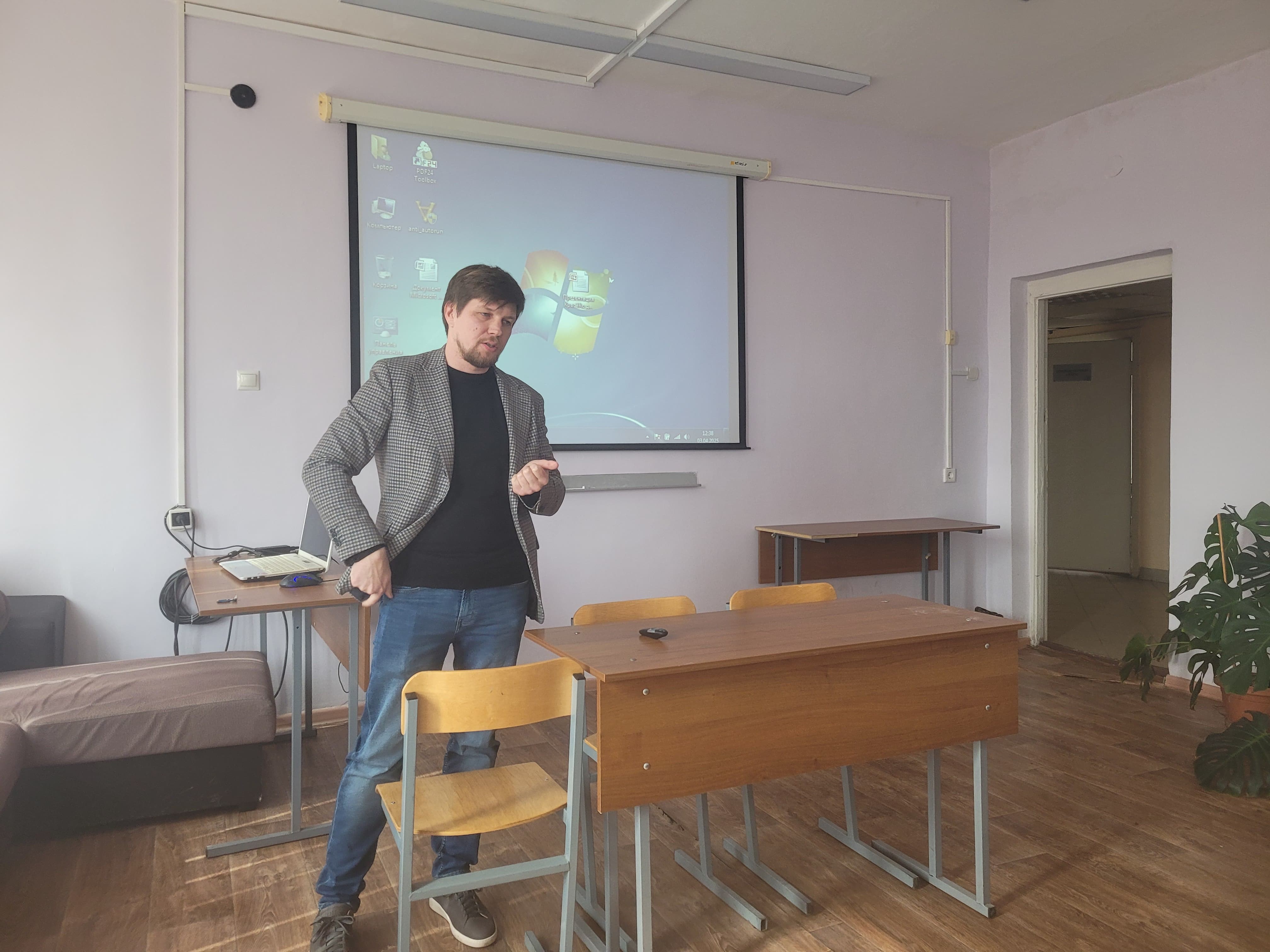 3. Встреча с начальником отдела гидрологических прогнозов Красноярского гидрометеоцентра Путинцевым Львом Александровичем 24 февраля 2022 года. Мероприятие организовали преподаватели кафедры «Природообустройство» для студентов выпускного курса по направлению 20.03.02 «Природообустройство и водопользование» (рис.3).