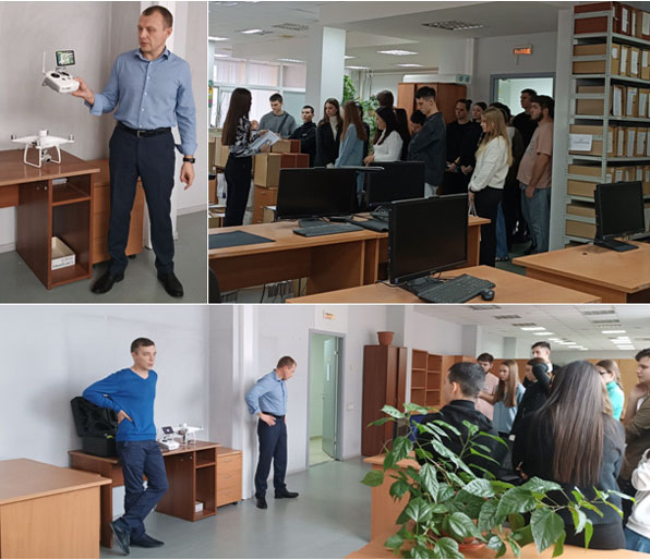 30 октября 2023 года состоялась третья экскурсия на производственную площадку филиала ППК «Роскадастр». Цель проведения экскурсии – закрепление теоретических и практических знаний и умений студентов, обучающихся по направлению подготовки «Землеустройство и кадастры». Сотрудники филиала ППК «Роскадастр» подробно раскрыли структуру филиала, познакомили с работой различных отделов. Студенты активно интересовались деятельностью филиала. Начальник отдела инфраструктуры пространственных данных Воронов Геннадий Иванович показал принципы работы квадрокоптера и каким образом, используется полученный картографический материал в формировании караты-плана территории. Преподаватели и студенты института выражают огромную благодарность сотрудникам филиала ППК «Роскадастр» за проведенную экскурсию!