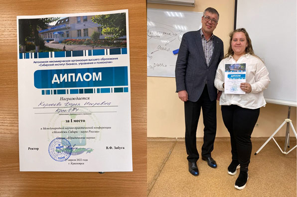 27 апреля 2022 года на базе Сибирского института бизнеса, управления и психологии прошла Международная научно-практическая конференция «Молодежь Сибири – науке России». В работе секции «Юридические науки» приняли участие обучающиеся юридического института ФГБОУ ВО «Красноярский ГАУ» Вешникова Наталья Александровна и Корнеева Дарья Игоревна. Результаты работы секции оценивались жюри под руководством канд. юрид. наук, доцента, судьи Красноярского Краевого суда в почетной отставке, и.о. декана юридического факультета, заведующего кафедрой уголовного права и процесса АНО ВО СИБУП Галимова Олега Хамитовича.
