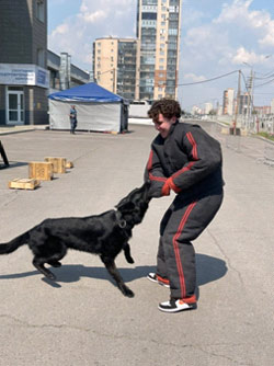 в показательном выступлении кинологов со своими пушистыми подопечными. Кинологи