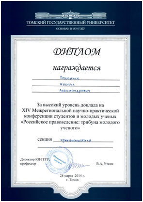 юриспруденции», Научный руководитель д.ф.н., профессор Павловский В.В.