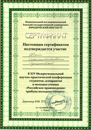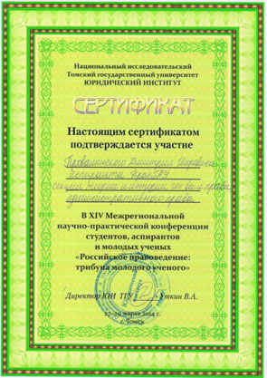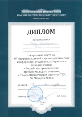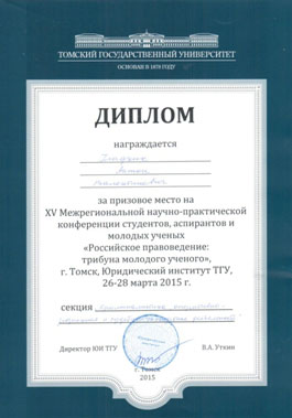 Федерации, одно из III-х мест заняла студентка 4 курса юридического