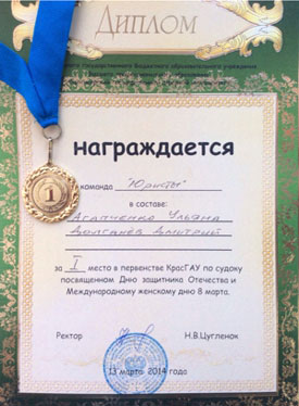 Студенты Юридического института Красноярского государственного аграрного университета приняли участия на Всероссийской студенческой олимпиаде 16-17 апреля 2014 года.