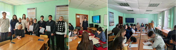 О нашего института в работе площадок приняли участие студентка 1 курса Агапченко Ульяна, студент 2 курса Долганев Дмитрий и студент 2 курса Крутенков Тимур в качестве волонтера.