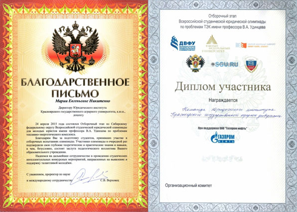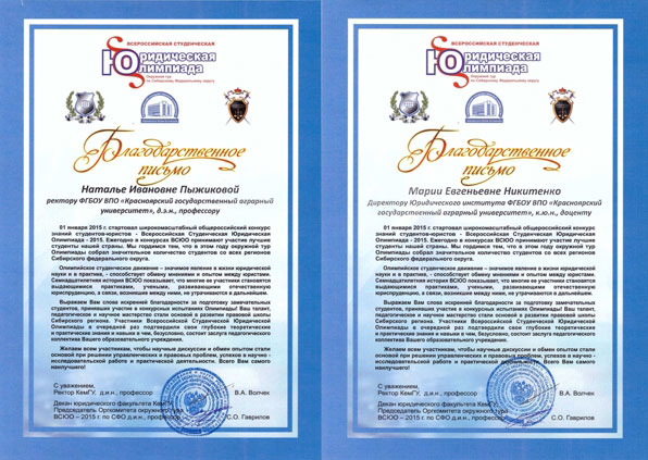 Участниками данной олимпиады от Юридического института Красноярского государственного аграрного университета показан достойный уровень знаний.