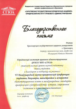 В научных мероприятиях принимают участие преподаватели Юридического института Красноярского ГАУ -