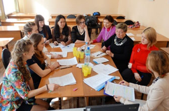 После регистрации участники олимпиады и преподавательский состав приняли участие в церемонии открытия окружного тура ВСЮО 2014. Кураторам предложили принять участие в круглом столе по проблемам внедрения дистанционных образовательных технологий.