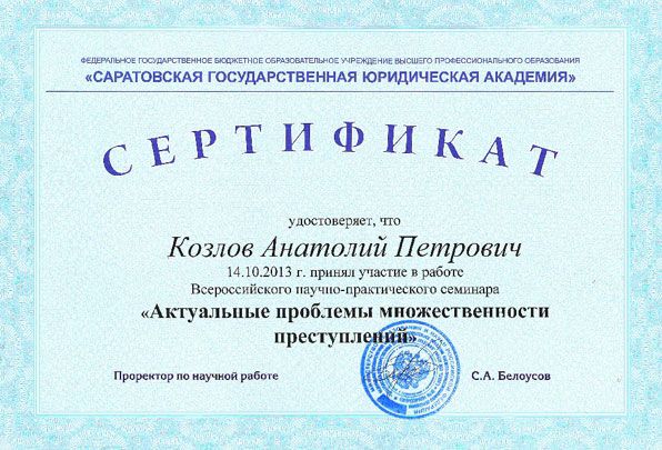 Саранска, Воронежа, Пензы и других городов России. На семинаре Козлов А.П. выступил