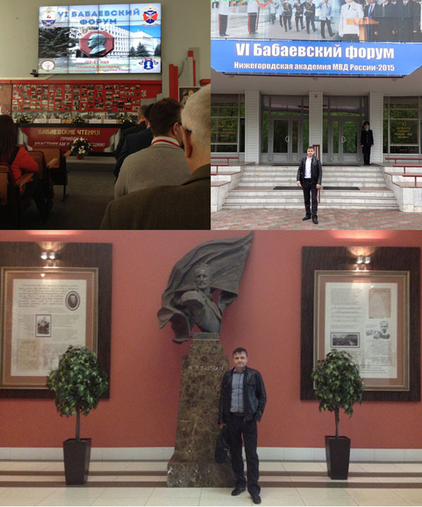 20-21 мая 2015 преподаватель кафедры Судебных экспертиз Грязнов Игорь Александрович принял участие в Международной научно-практической конференции на тему «Новая теория уголовно-процессуальных доказательств», которая проходила в Нижегородской академии МВД России и Нижегородской правовой академии г. Нижний-Нвогород. В работе конференции участвовали представители судейского корпуса, Федерального Законодательного Собрания РФ, правоохранительных органов, адвокатуры, ученые, как из России, так и из других государств. Конференция позволила обсудить проблемы теории и практики отечественной уголовной юстиции в международном контексте, определить возможные пути решения этих проблем.