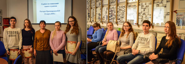 30 ноября на заседании Ученого совета Красноярского ГАУ заслуженные награды из рук ректора Пыжиковой Натальи Ивановны получили сотрудники и студенты Юридического института – Надараиа Заза Георгиевич, руководитель студенческой правовой консультации (Юридической клиники), старший преподаватель кафедры уголовного права и криминологии, а также студенты IIIкурса - Ханюков Эдуард и Норкин Виктор.