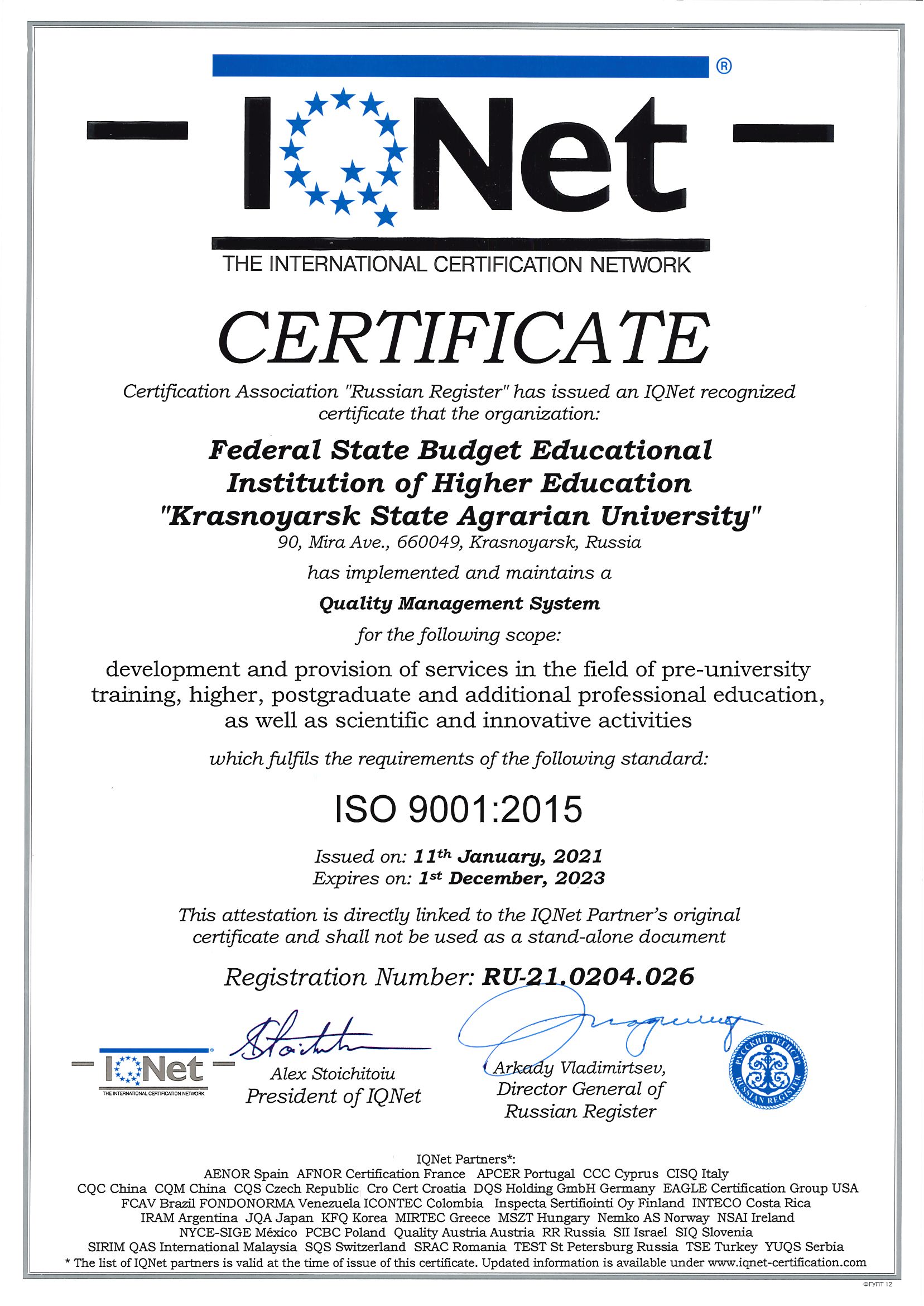 Захиалгат Красноярскийн Улсын Хөдөө аж ахуйн их сургууль