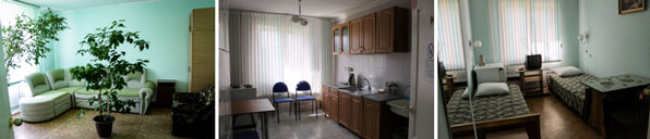 В общежитиях коридорного типа в каждой секции по 17 комнат: 2 большие (на 3 места) и 15 маленькие (на 2 места). Туалет на 3 секции, 4 раковины для умывания, общая кухня. Душ общий, расположен на первом этаже.