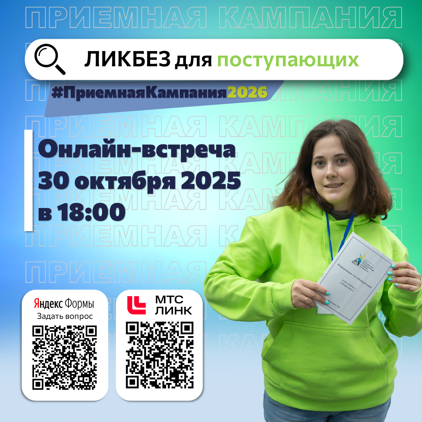 С октября 2025 года мы запускаем новую серию вебинаров для потенциальных абитуриентов и их родителей под общим названием "ЛИКБЕЗ для поступающих". В рамках вебинаров мы будем каждый месяц в простой и доступной форме знакомить вас с особенностями Приемной кампании 2026 года.