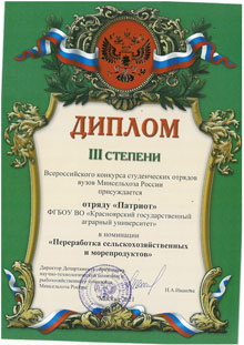 Студенческие отряды КрасноярскогоГАУ – это эффективное направление подготовки специалистов для сельского хозяйства, решения задач распределения кадров и их психологической адаптации в прикладной деятельности.