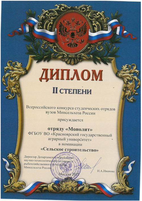 Особенно значимо и приятно, что обе награды — у Красноярского ГАУ. Первую с «Мирного атома» привёз строительный отряд «Монолит» ещё в 2015 году.