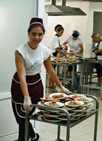 Сервировка столов, подача блюд, уборка.