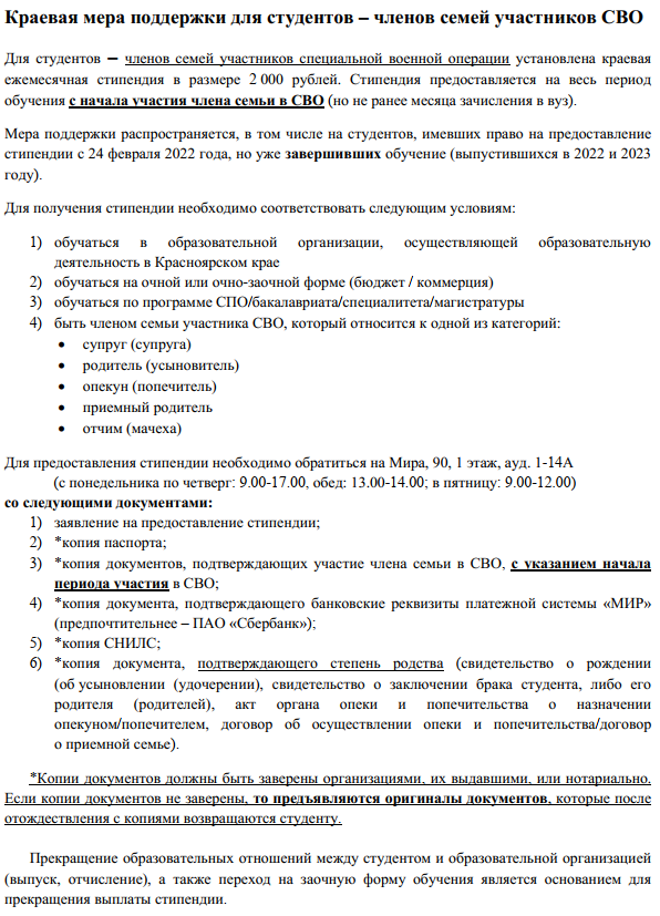 Постановление Правительства Красноярского края от 09.04.2024 N 243-п "Об утверждении Порядка предоставления ежемесячной стипендии за счет средств краевого бюджета студентам (курсантам), обучающимся по очной и очно-заочной форме обучения в образовательных организациях высшего образования, находящихся на территории Красноярского края, по образовательным программам среднего профессионального образования, программам бакалавриата, программам специалитета, программам магистратуры"