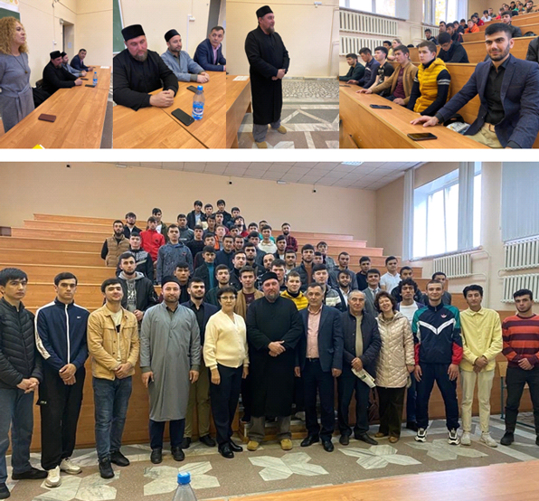 20 сентября в учебном корпусе института ПБиВМ состоялась встреча иностранных студентов Красноярского ГАУ. Поговорили о роли молодежи в сегодняшнее время, о межкультурном взаимодействии и о важности уважительного отношения к культурам различных этнических групп и конфессий. Ребята получили наставления от руководства Единого духовного управления мусульман Красноярского края - помощника Муфтия Салахетдинова Рушана Хазрат и Магомедова Магомеда Хапизовича - имама Красноярского управления мусульман.
