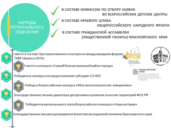 Общероссийская молодежная общественная организация «Российский союз сельской молодёжи» учреждена 5 декабря 2008 года. Красноярское региональное отделение сформировано в январе 2009 года в стенах Красноярского государственного аграрного университета.За это время мы прошли длинный путь развития и создали обширную сеть местных отделений в более чем 30 районах Красноярского края, объединив более 2 000 молодых людей.
