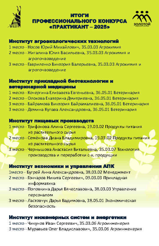 Итоги конкурса "Золотой кадровый резерв АПК"
